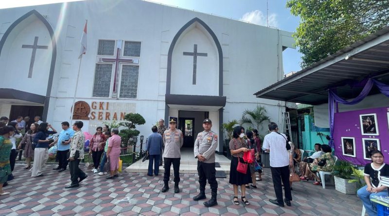 Dalam pelaksanaannya, personel Polsek Serang melakukan pengawasan di sekitar lokasi gereja serta memastikan situasi tetap aman dan kondusif selama kegiatan ibadah berlangsung.