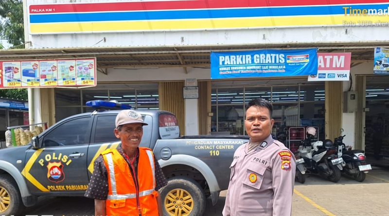 Personel Polsek Pabuaran patroli sambang di area Parkir Alfamart Baruan, dialogis kamtibmas dengan juru parkir