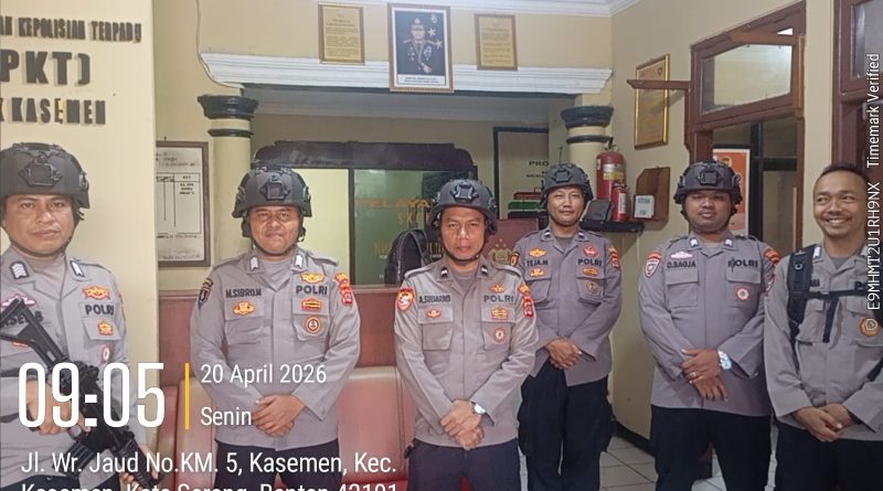 POLRESTA SERKOT_Berada di Lokasi di Mako Polsek Kasemen Polresta Serkot telah dilakukan Kegiatan Sispam Mako dengan melakukan Penutupan Portal serta kesiap siagaan Personil Piket Pam Mako Polsek Kasemen Polresta Serkot. Selasa (21/04/2026).